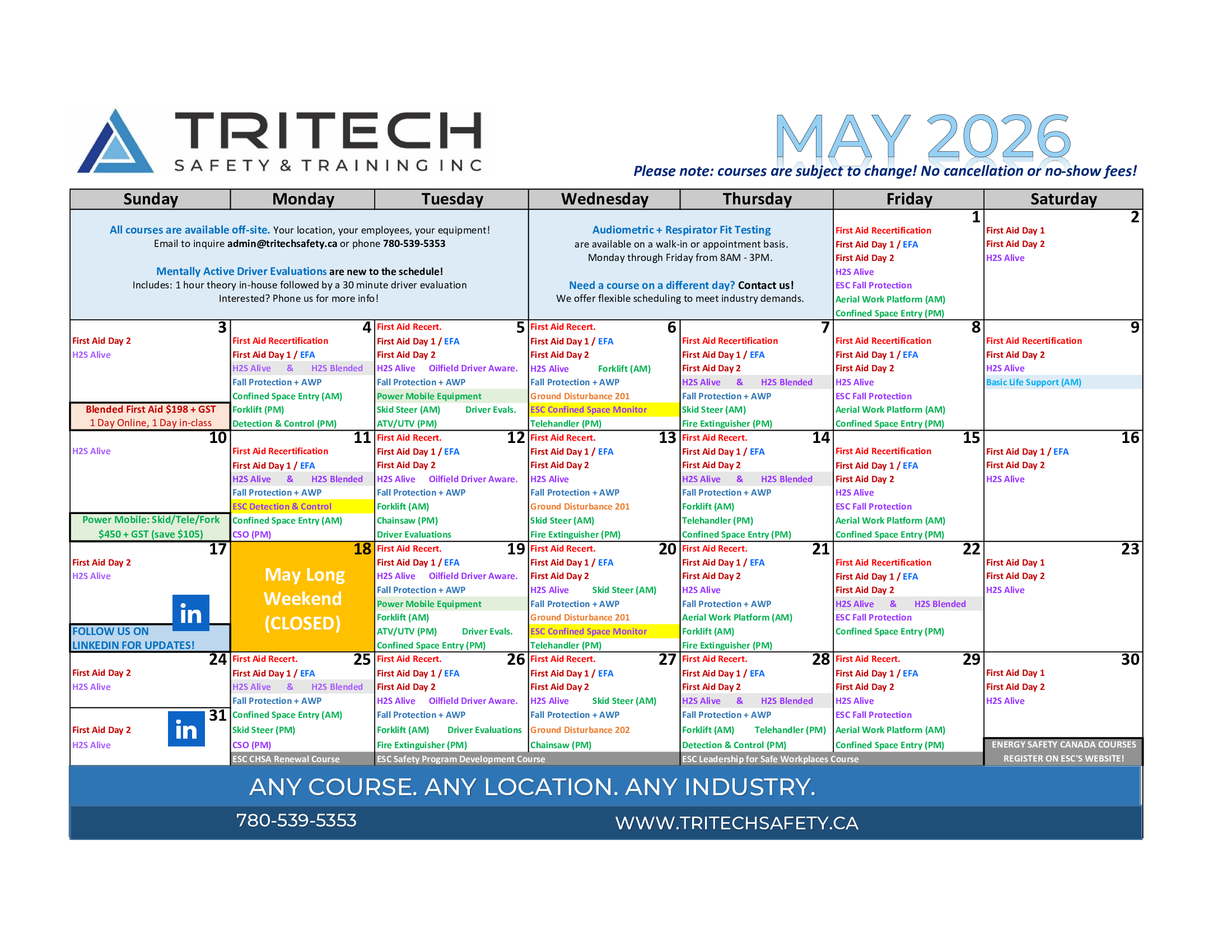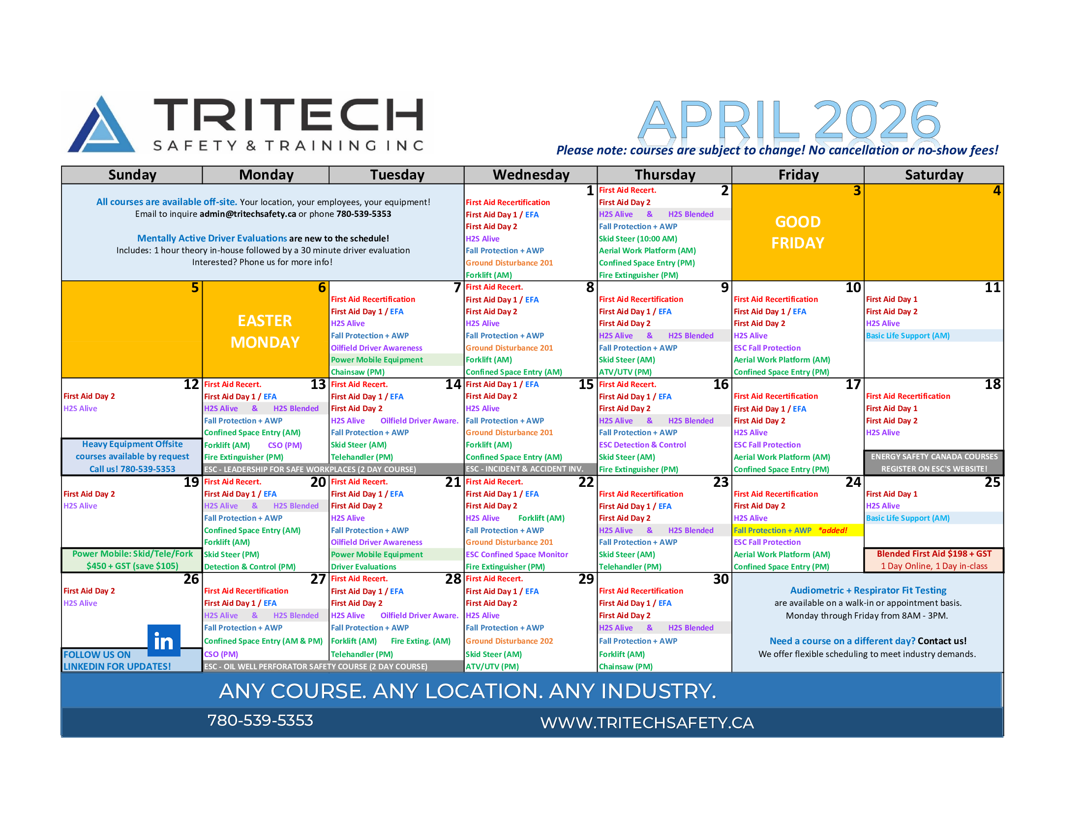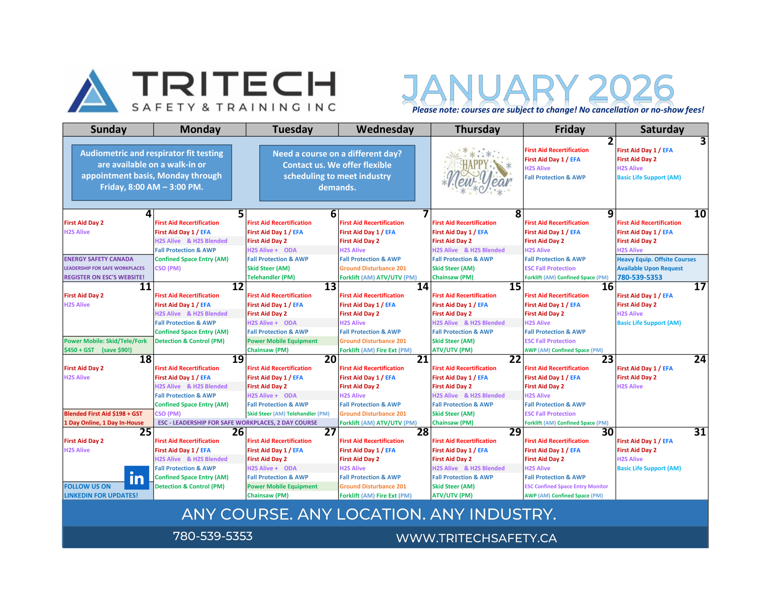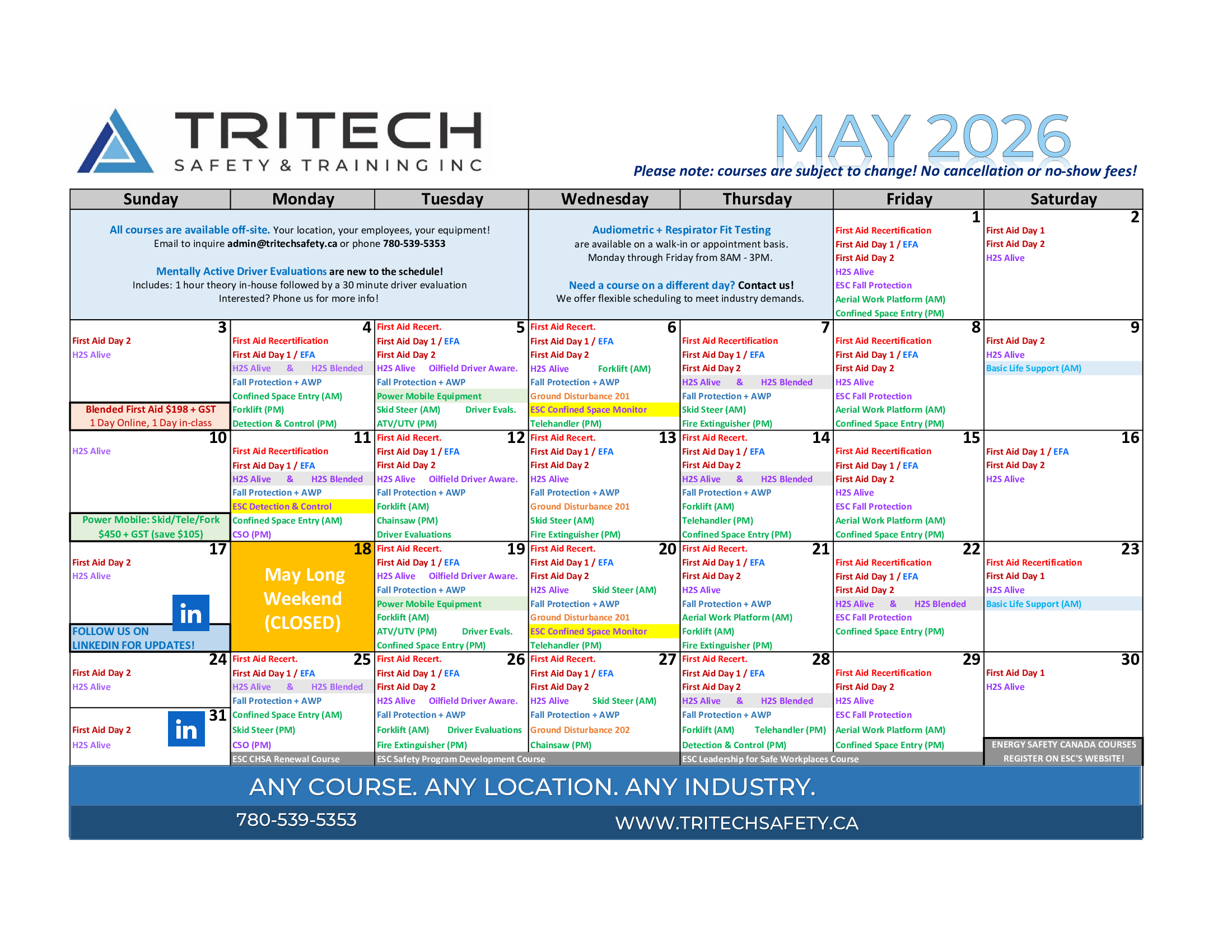 Grande Prairie Safety Training Calendar