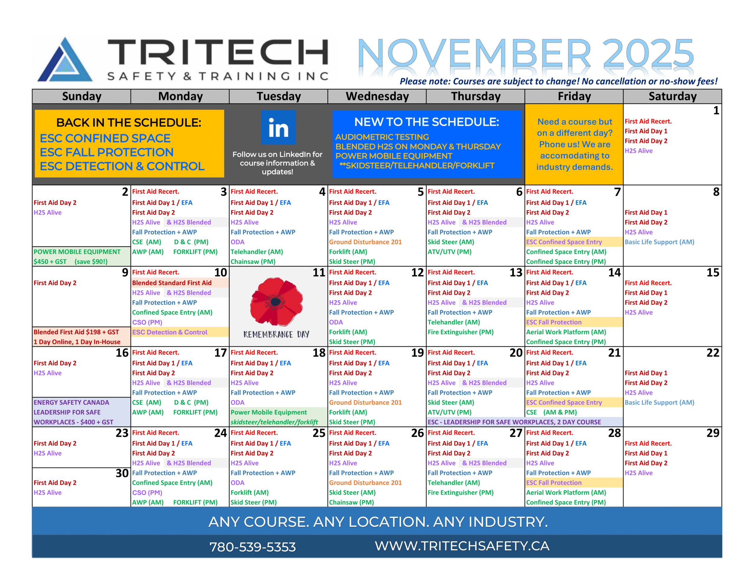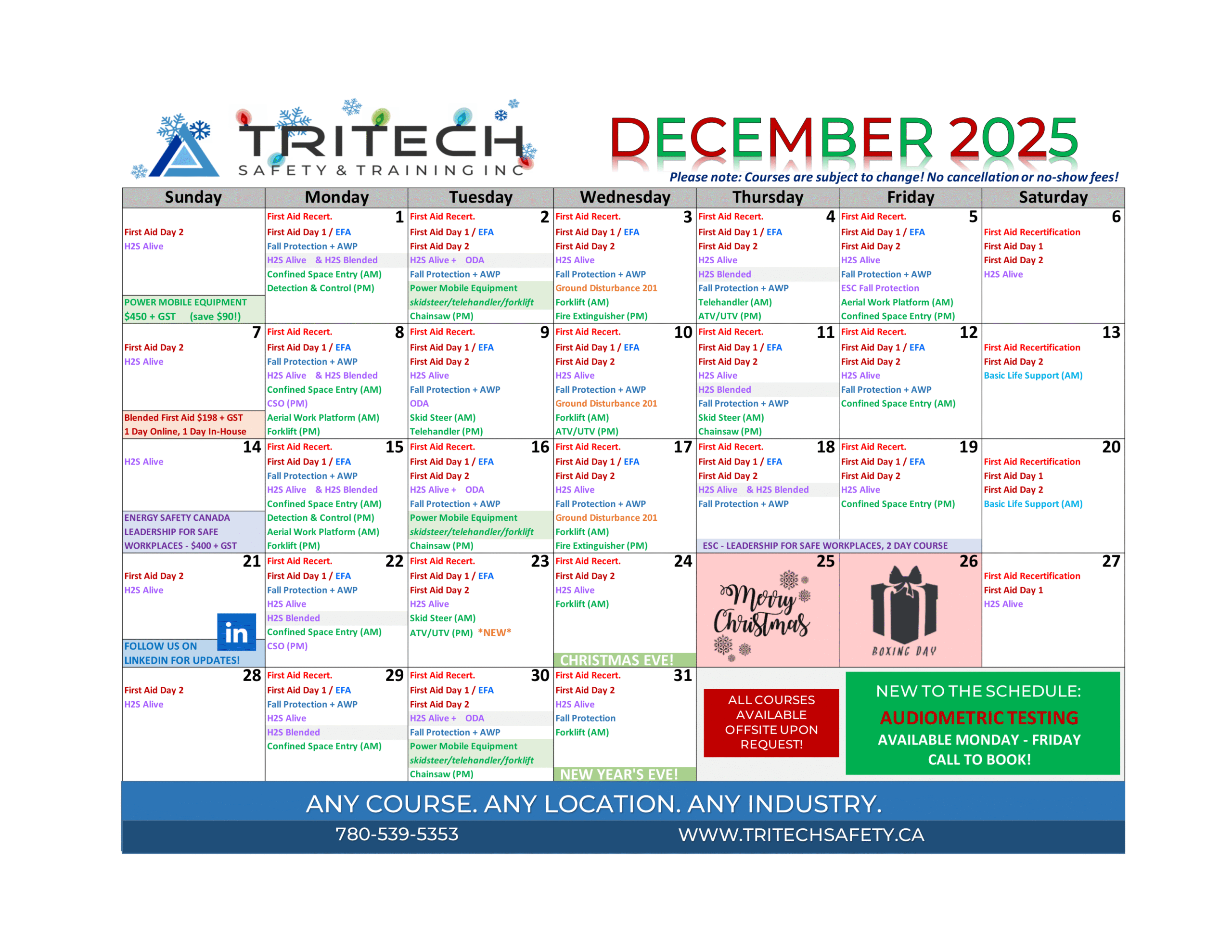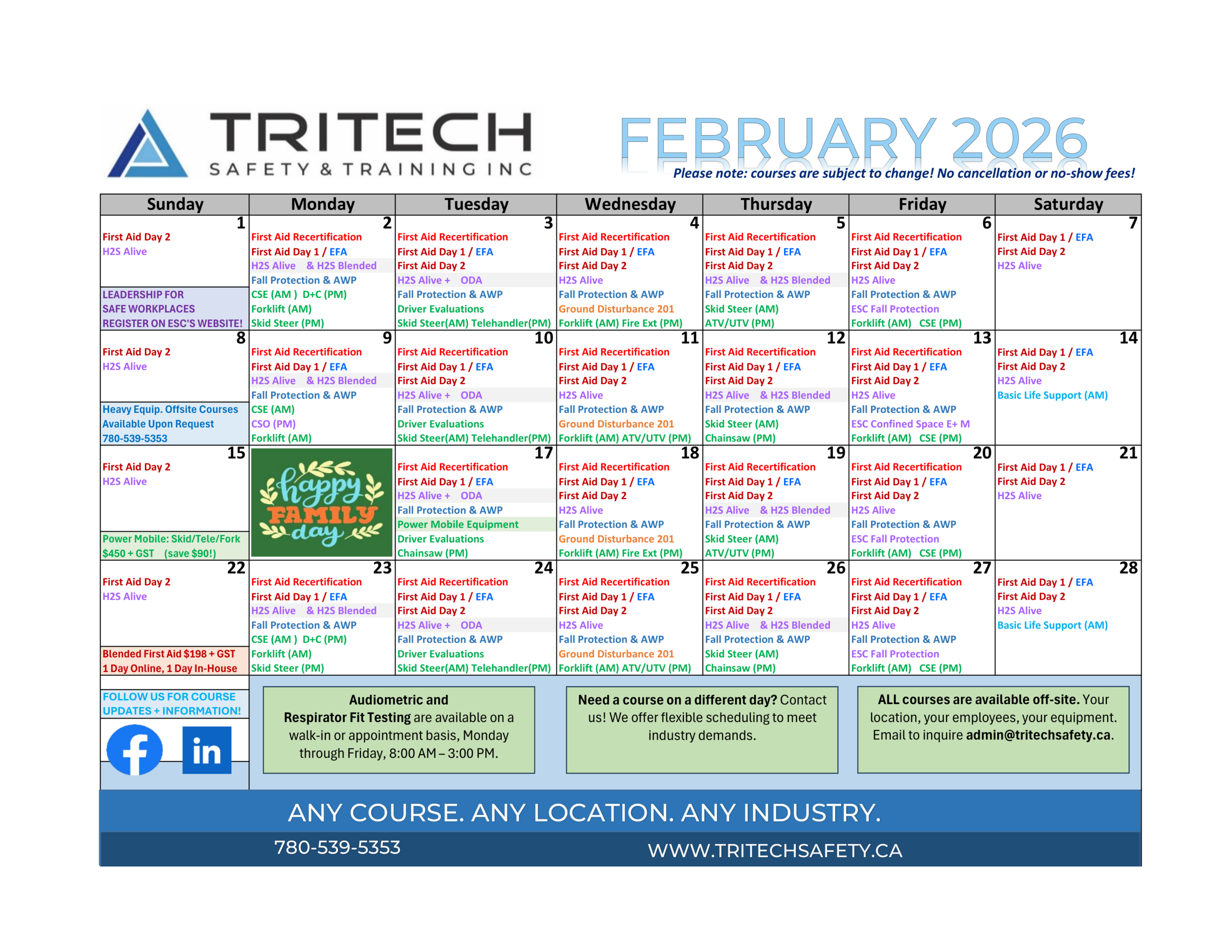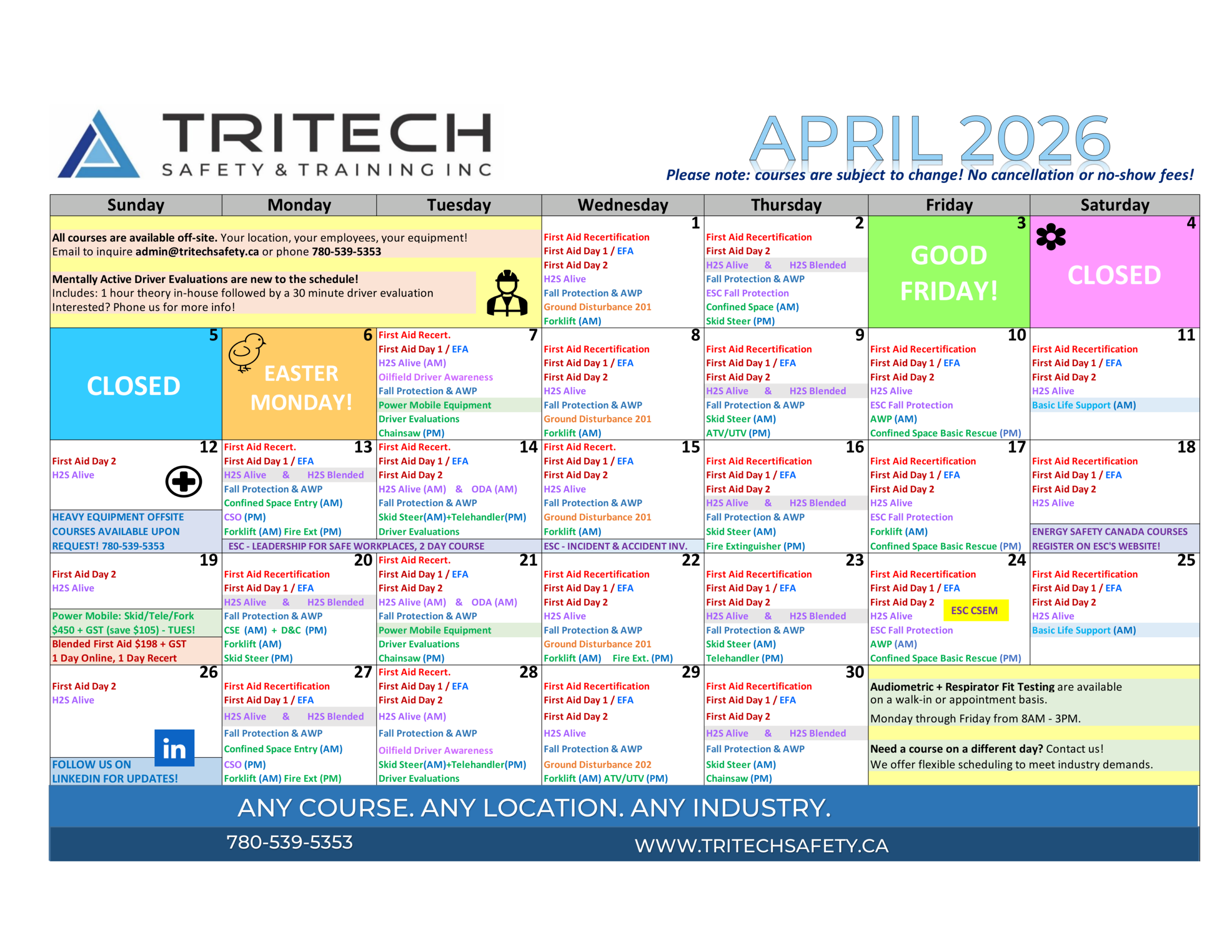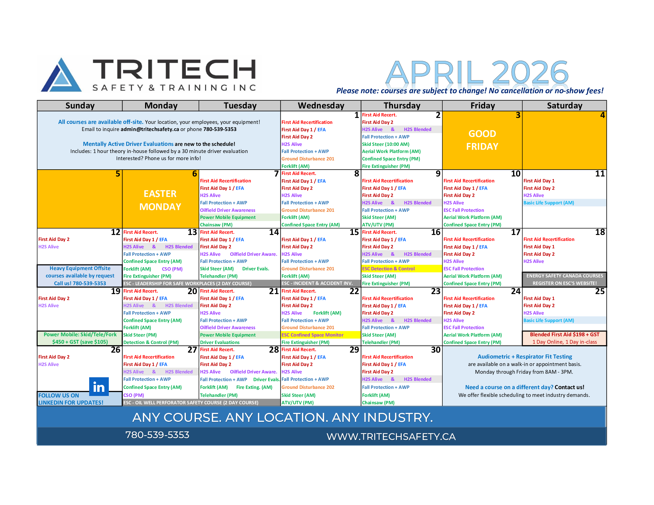 Grande Prairie Safety Training Calendar
